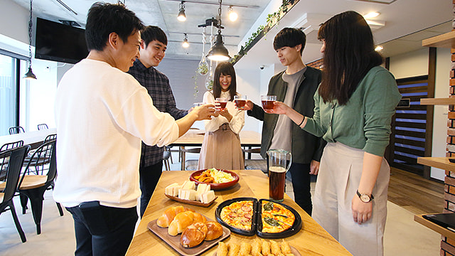 食堂の一角には給茶・給湯機、電子レンジ・トースターが備え付けられ、いつでも好きな時にお茶、コーヒー、軽食などを飲食することができます。